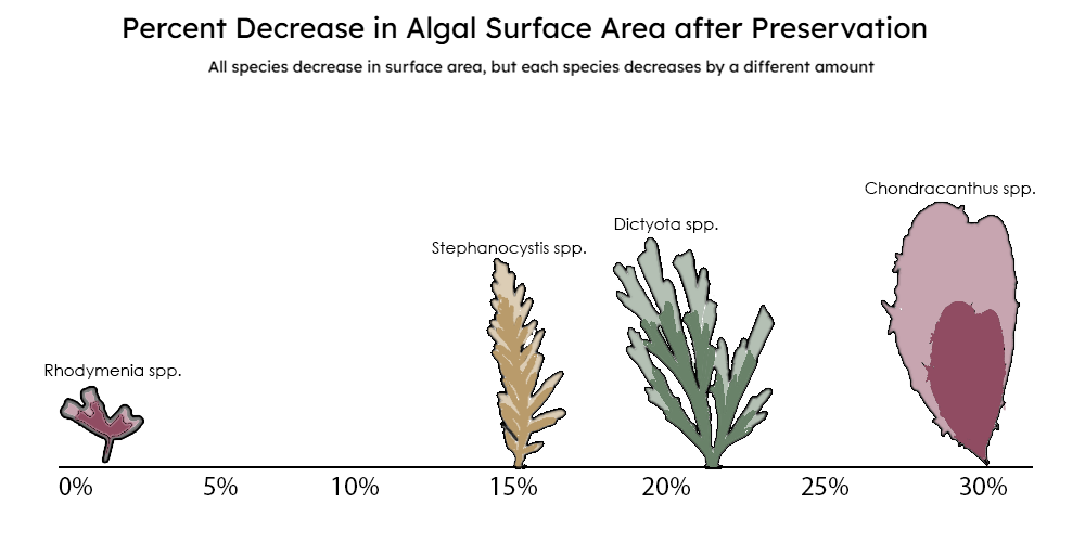 {group="finalviz" description="A diagram quantifying extent to which a seaweed shrinks during the preservation process and that it varies by species."}